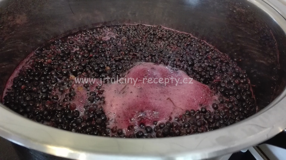 Vzniklou šťávu nalijeme zpět do hrnce. Přidáme cukr krystal, vanilkový cukr, silnou instantní kávu, šťávu z půlky citrónu a skořici (případně ještě 3 hřebíčky, ale nemusí být). Opět pozvolna zahřejeme. Mícháme až do rozpuštění cukru a poté odstavíme ze sporáku a dáme do chladu do druhého dne odpočívat.
