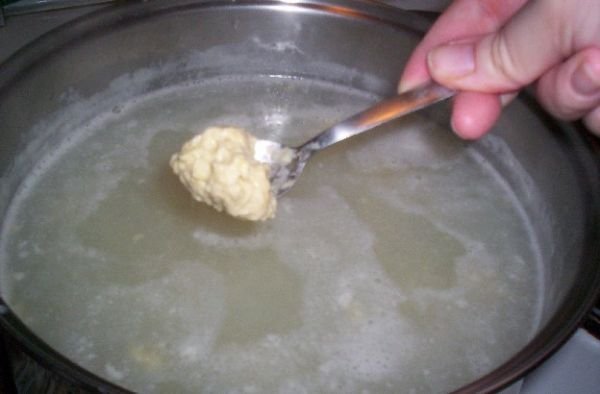 Když už voda vře, tak pomocí lžičky namočené ve vodě vykrajujeme malé knedlíčky, které vaříme, dokud samy nevyplavou na hladinu. Vařím půl na půl – tzn. že zkrátka do vody naházím půlku těsta, a když jsou všechny knedlíky uvařené, tak tam naházím tu druhou. Knedlíky jsou potom skoro za chvilku hotové. Vždycky jsem vařila knedlíky asi tak po 20 kouskách a pak jsem je vcelku vařila šíleně dlouho!