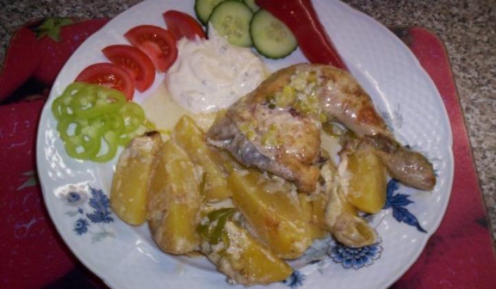 Kuře na bramborách a pórku | recept. Co k obědu, věčná otázka. Mám pro vás recept na kuře na bramborách a pórku. Pórek tomu dá takovou krásnou vůni a dokonce bych řekla, že je to mnohem lepší než „Kuře na bramborách 2 v 1″. Vyzkoušejte! Je to fakt dobrota a skoro bez práce.