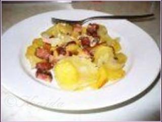 Zapečené brambory s masem | recept od Kajdy. Přemýšlíte, co uvaříte k obědu, zbyly vám od neděle uvařené brambory a uzené? Zapečte si je spolu se sýre…