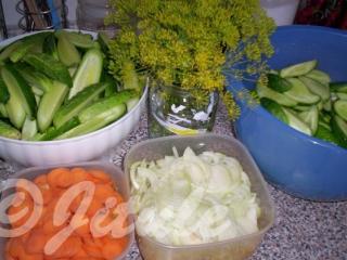 MAMINČIN LÁK (kyselejší): svaříme 3,5 l vody s 1 l octa, přidáme 2 sáčky DEKA a povaříme s 60 tabletkami sacharinu (umělého sladidla), čerstvý kopr, mrkev, cibule – tahle dávka je asi na 3 kg okurek