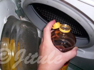 2. Pračku zapneme na 90°C a necháme projet celý cyklus praní. V jednom místečku po napuštění vody se pračka na chvilku zastaví a odpočívá. V tom momentě ji vypnete, otevřete a nalijete do ní litr octa. Zavřete a znovu zapnete, pračka si bude pokračovat dál v nastaveném programu. Tímto se pračka vyčistí, aby nebyla cítit práškem a taky je to prevence proti vodnímu kameni, protože ocet ho rozpouští. Nyní je pračka připravená k mytí okurek